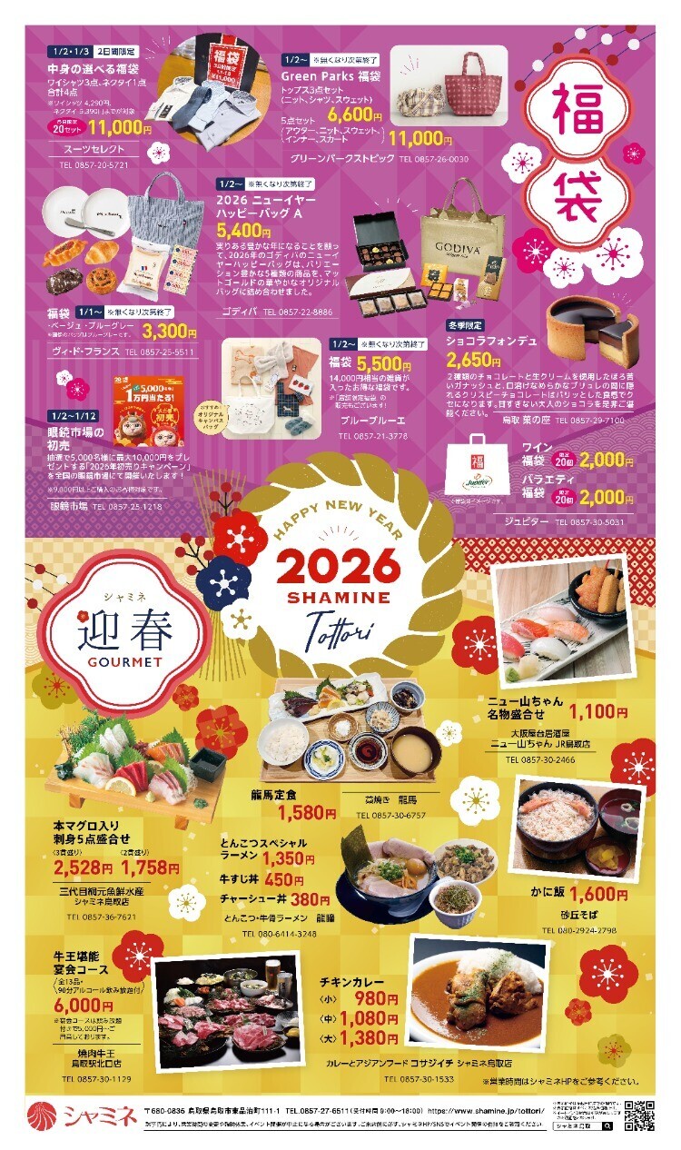 1月2日から【シャミネ鳥取初売り プレミアムバーゲン】を開催いたします✨