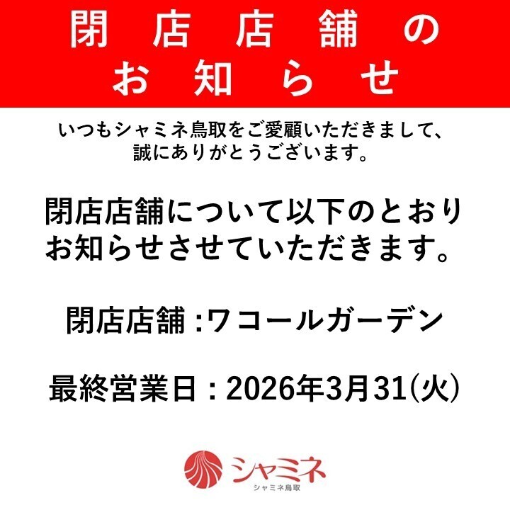 いつもシャミネ鳥取をご愛顧いただきまして誠にありがとうございます。