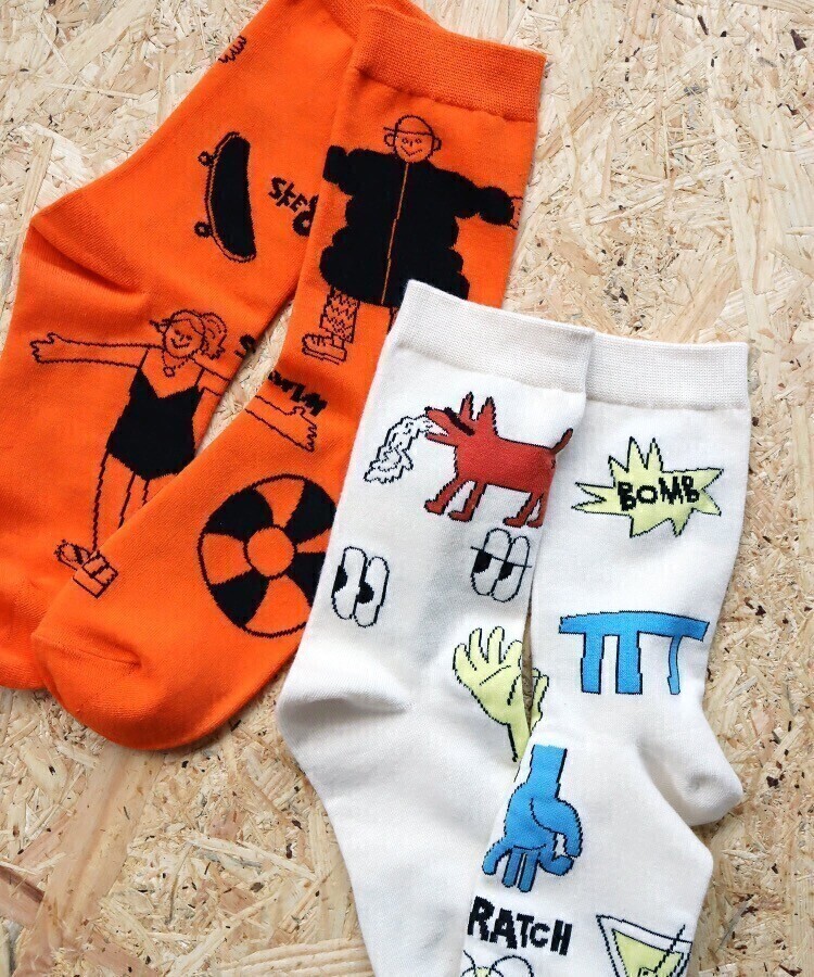 たぶん絵に意味は無いけどなんだか笑えてくる、そんなソックスです。