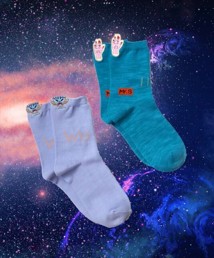 【2足組】宇宙式挨拶刺繍ショートソックス ¥1760(税込)