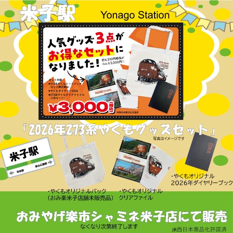 「やくも」人気グッズ3点がおトクなセットになりました!
